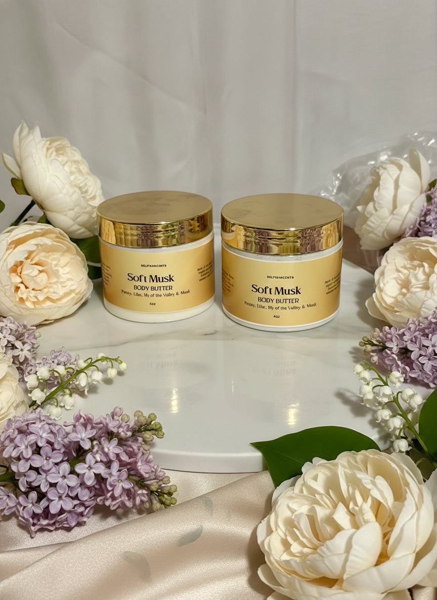 Body Butter 4oz: A rich formula crafted with distilled water, glycerin, avocado oil, almond oil, and vitamin E oil. Enhanced with a non-toxic fragrance, this body butter provides intense hydration and a velvety finish. 12/1/2025